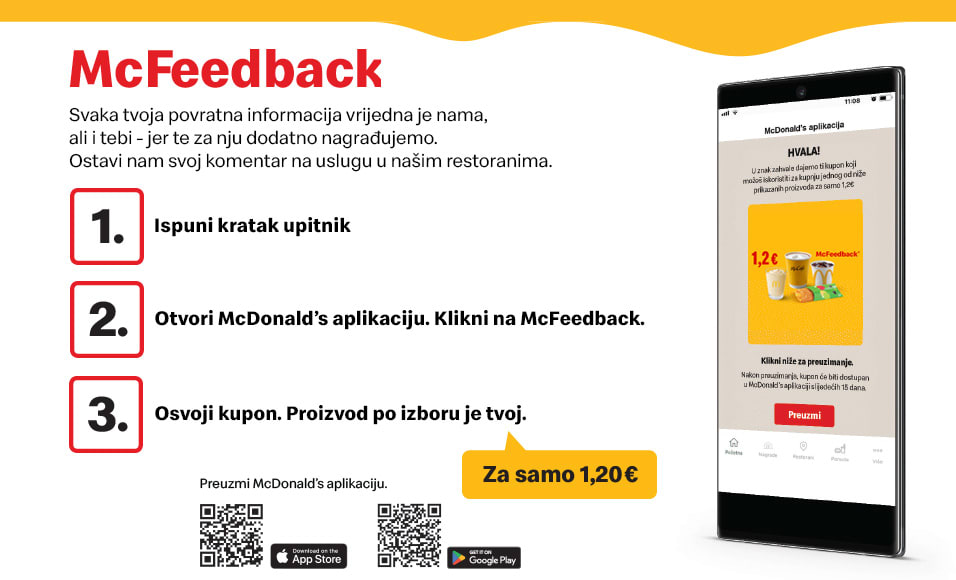 Ukoliko te zanima koliko nutritivnih vrijednosti sadrže tvoji omiljeni McDonald’s proizvodi odaberi ih na našoj Ponudi te ih dodaj ovdje.