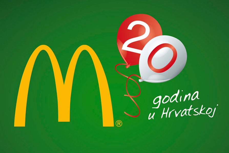 Prvih 20! 20 godina kvalitete, 20 godina ljubazne usluge, 20 godina novih okusa sendviča, priloga, deserata, 20 godina novih igrački u Happy Mealu… I 20 godina s našim gostima. Kako bismo dostojno proslavili prvih 20 godina McDonald’sa u Hrvatskoj pripremili smo razna iznenađenja u restoranima, a najveće je bio HRburger – burger pun domaćih okusa!