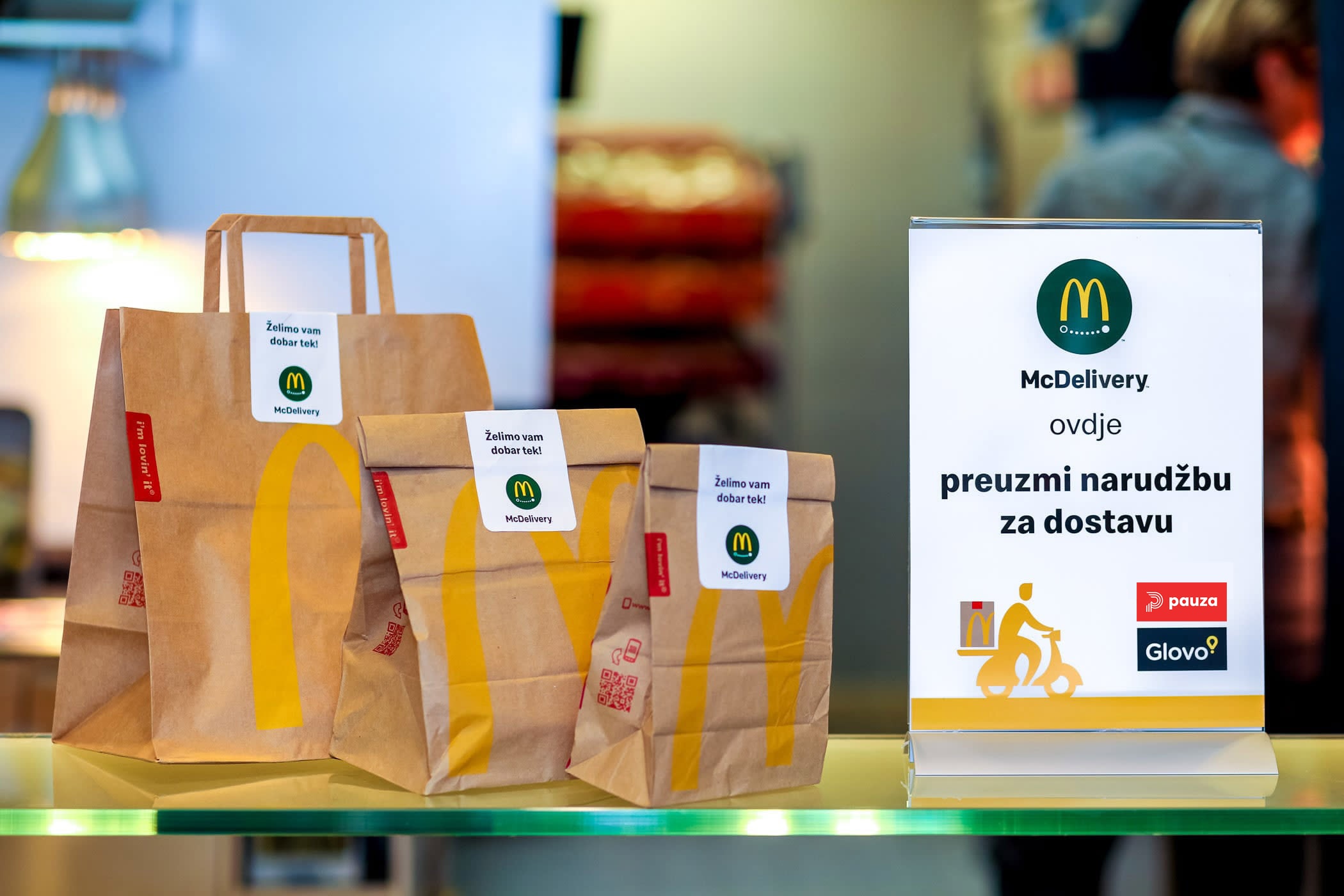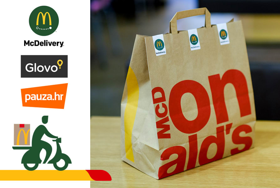 Uveli smo dostavu! Odsad u McDonald'su možeš uživati gdje god poželiš, kod kuće, na poslu ili u parku! Putem Glovo i Pauza.hr naruči iz zagrebačkih restorana Pothodnik, City Center One West, Kvatrić, Avenue Mall, Rotor, Kruge i Vrapče, splitskih restorana Poljička i CCO te osječkog restorana u Županijskoj ulici. Putem Glovo iz Supernova (Buzin i Zadar) i McDrivea Zadar. Veselimo se tvojim narudžbama!