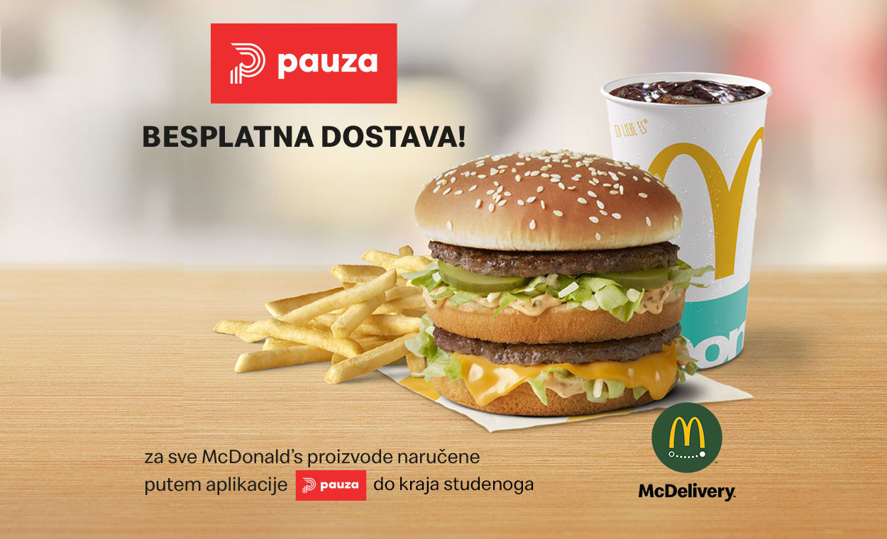 Vaši omiljeni McDonald's okusi u najkraćem roku stižu na vaša vrata. Naručite dostavu putem Pauza aplikacije i iskoristite besplatnu dostavu do kraja studenoga.