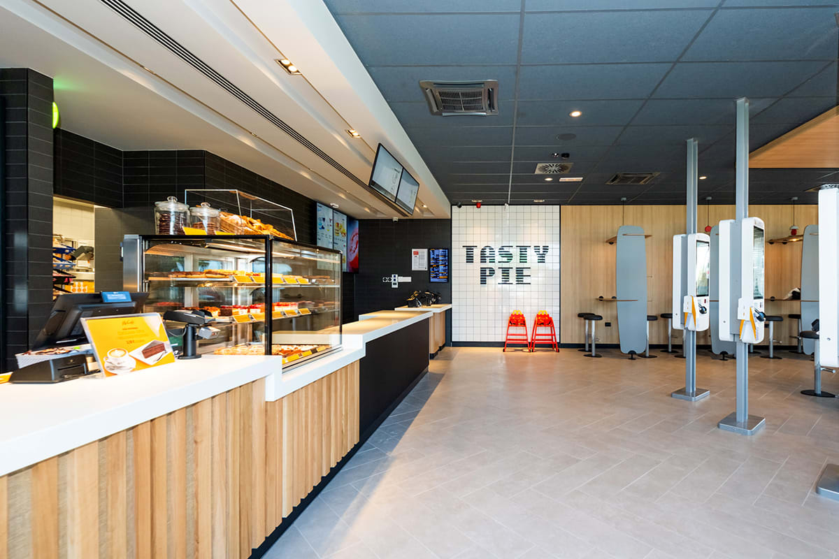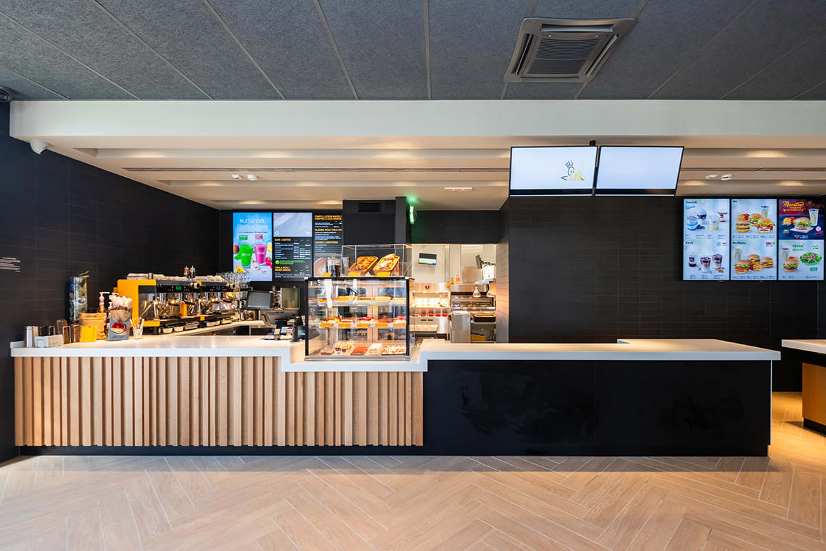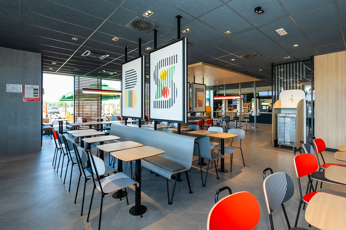 U ugodnom ambijentu restorana pronaći ćeš samoposlužne kioske na kojima možeš brzo i jednostavno naručiti svoje omiljene McDonald’s proizvode i skenirati MyM digitalnu karticu lojalnosti. Tu je i McCafé kutak s kremastom 100 posto arabica kavom i slasticama, a kada si u žurbi, čekamo te na McDrive liniji. Osim u ugodnom interijeru restorana, odmor pronađi i na terasi, a za sve najmlađe članove McDonald's obitelji uredili smo igralište s toboganom.