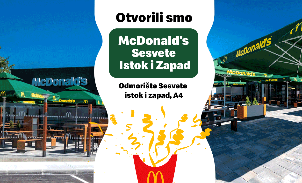 Otvorili smo McDonald's Sesvete Zapad i Istok, čime smo zaokružili brojku od ukupno 45 McDonald's restorana u Hrvatskoj! Novi restorani smješteni su u sklopu odmorišta Petrol na autocesti A4, poznatoj još kao i „varaždinska autocesta“.