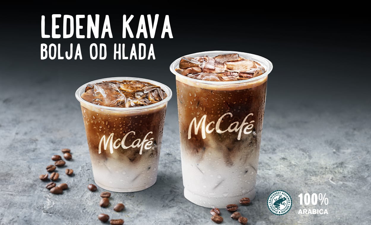Savršena fuzija svježe mljevene 100 % arabica kave, mlijeka i kockica leda utažit će tvoju želju za osvježenjem, a uz to će ti i zasladiti dan! Uz klasične, kušaj i našu Irish ledenu kavu. Pronaći ju možeš u omiljenom McCafé-u, svim našim restoranima i na McDrive liniji. A ako ju poželiš u beskofeinskoj verziji ili sa sojinim mlijekom, posjeti McCafé pult.