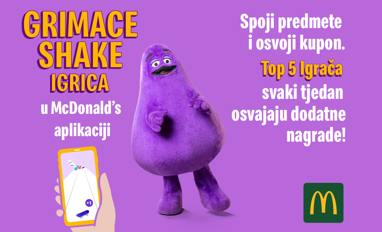 Otvori u aplikaciji Grimace Hub, istraži sve najvažnije lokacije i zaigraj Grimace Shake igricu. Cilj je jednostavan: spoji osam proizvoda, skupi osam bodova i kupon stiže direktno na tvoju digitalnu karticu lojalnosti.