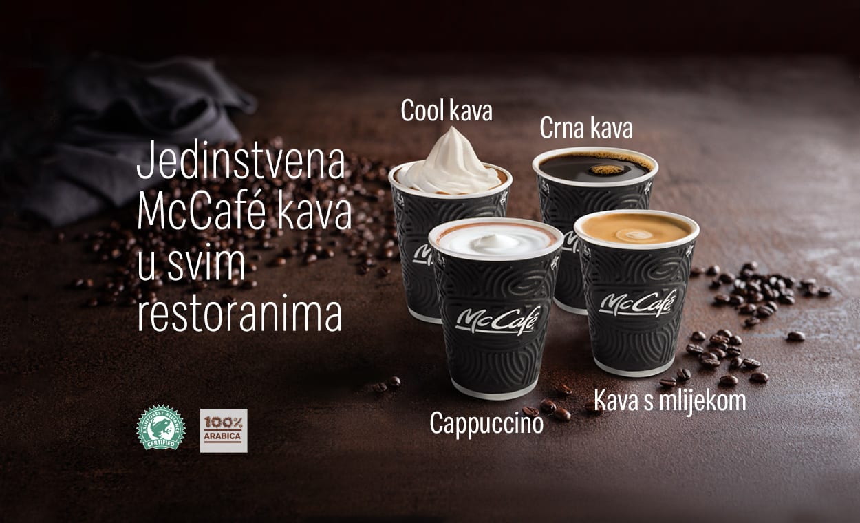 Sve ljubitelje naše kave razveselit će novost da je McCafé kava dostupna u svim našim restoranima. Osim u McCafé dijelu, možete je naručiti u restoranu, McDrive liniji ili pak dostavom preko Pauze.