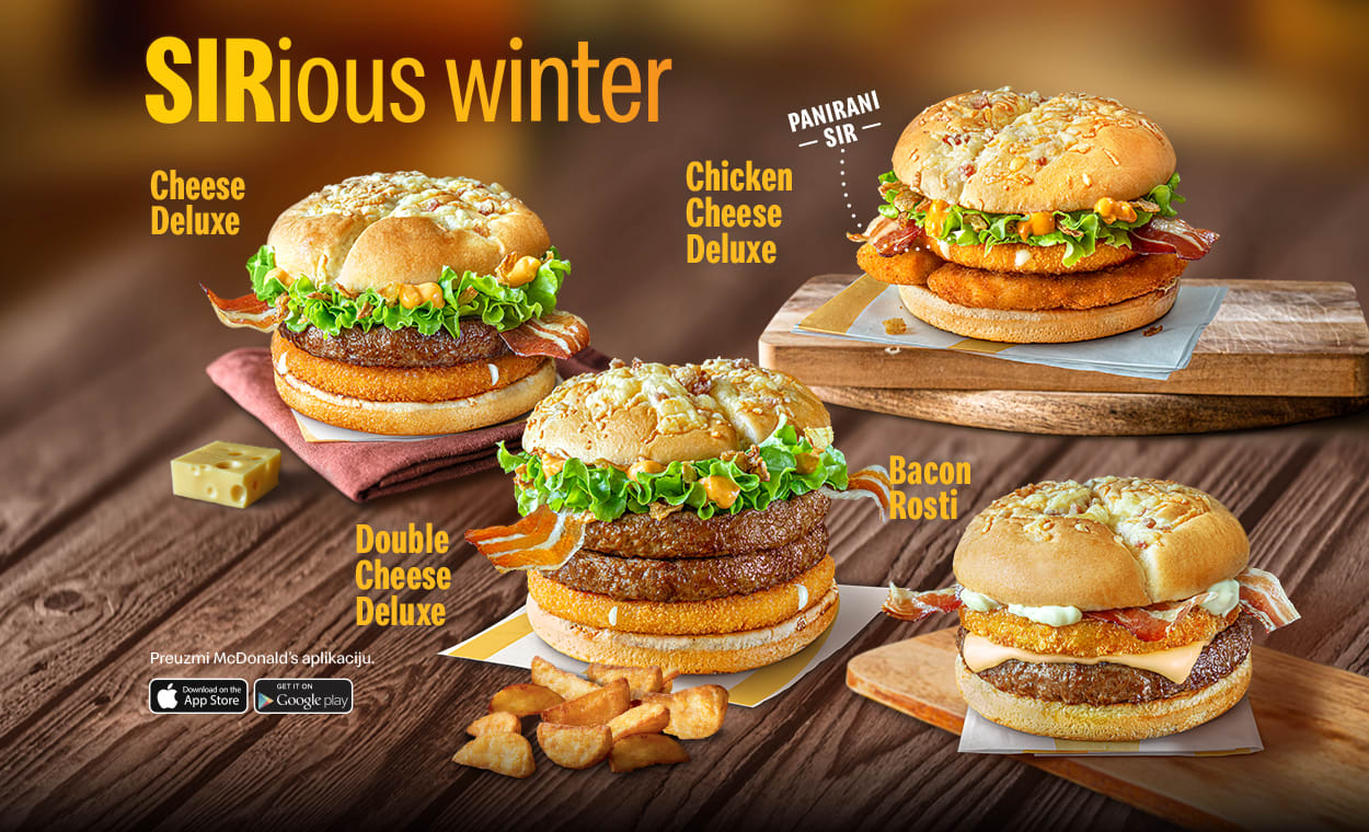 Sa zimskim (ne)vremenom dolazi i McDonald's zimska promocija. Ako spadaš među one koji ne vole dolazak hladnih dana, donosimo ti četverostruki razlog za osmijeh jer ova promocija obuhvaća čak četiri slasna burgera s puno, puno sira.
