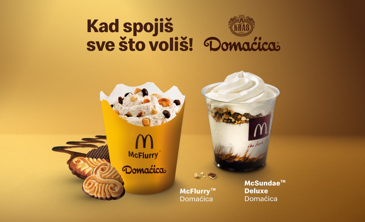 Nove verzije poznatih rashlađujućih deserata, McSundae Deluxe Domaćica i McFlurry Domaćica, slatka su iznenađenja koja smo, u suradnji s Krašem, za tebe pripremili u našoj radionici novih okusa.