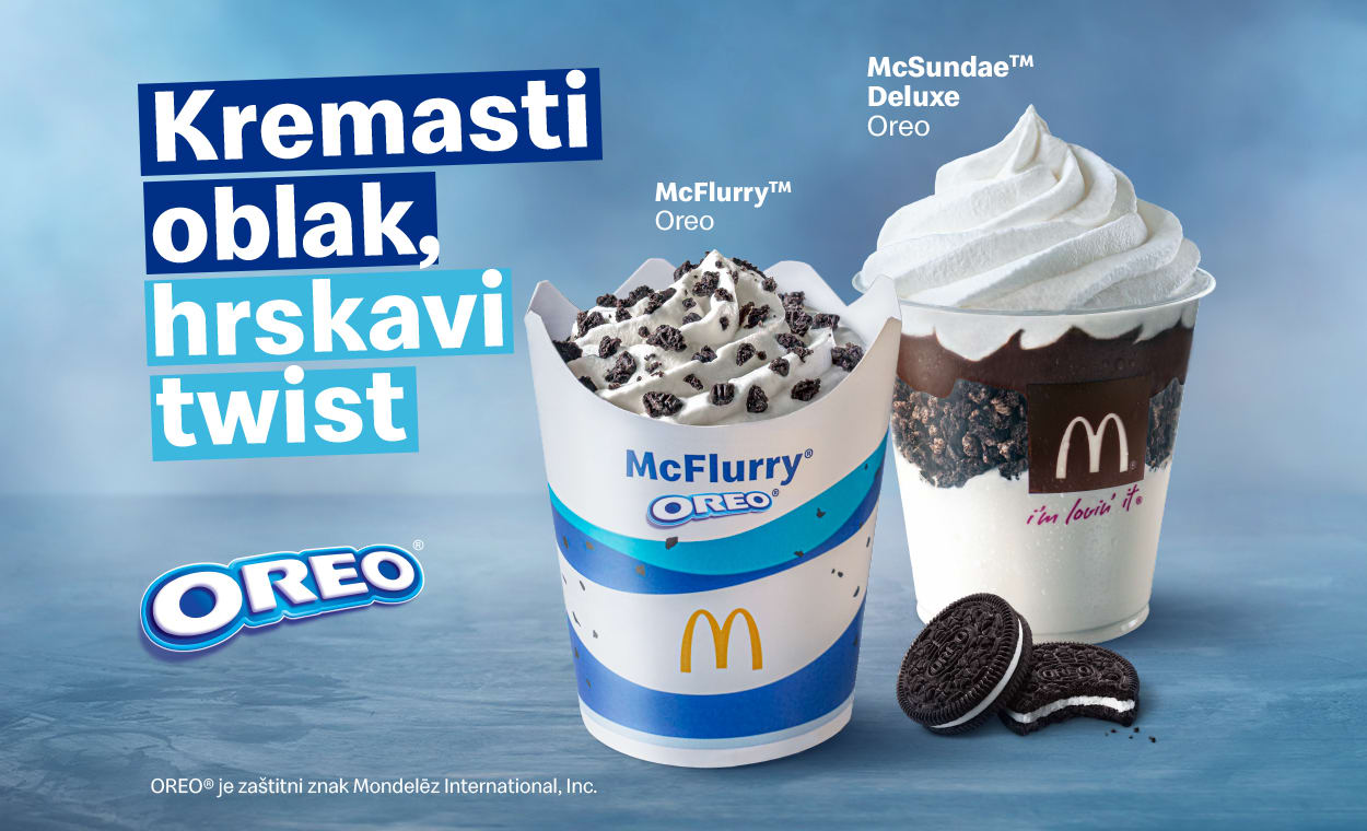 Kada temperature dosegnu vrhunac, dan spašava nova sladoledna promocija! Požuri u najbliži McDonald's i kušaj nove McFlurry Oreo i McSundae Deluxe Oreo sladolede.