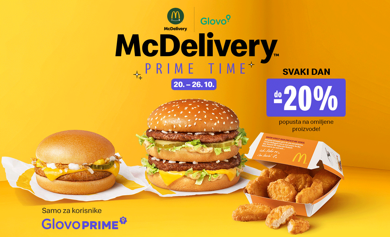 Otvori Glovo, odaberi McDelivery i iskoristi svoj Prime Time – jer najbolji okusi dolaze ravno na tvoja vrata!