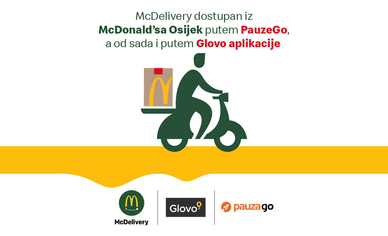 Još jedna novost McDelivery usluge! Uz PauzaGo, dostava iz McDonald'sa Osijek u Županijskoj ulici dostupna je i putem Glovo aplikacije!
