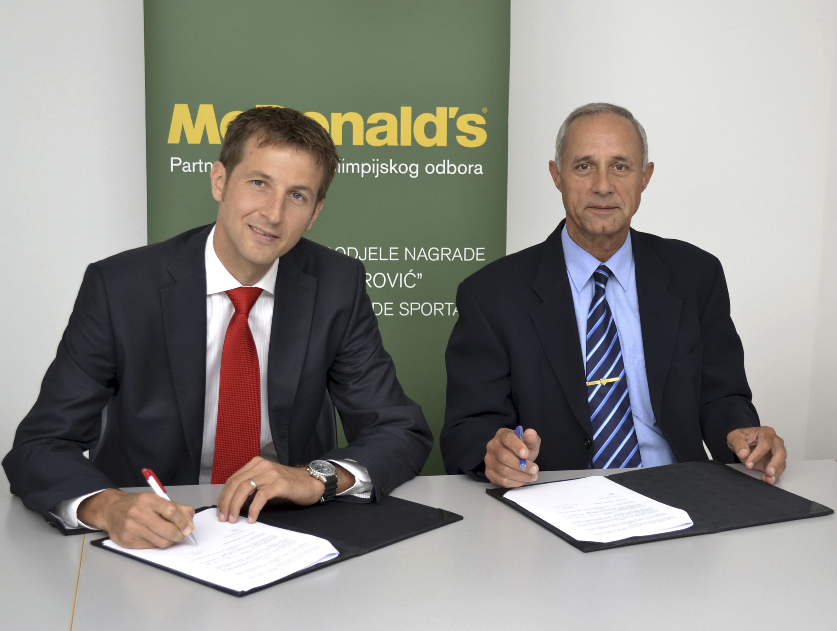 Tvrtka Globalna hrana, nositelj franšize McDonald’s za područje Hrvatske, postala je službeni sponzor Hrvatskog olimpijskog odbora. Ugovor o sponzorstvu potpisali su direktor McDonald’sa u Hrvatskoj Pavel Pavliček i glavni tajnik HOO-a Josip Čop, a potpisivanju ugovora nazočio je i predsjednik HOO-a Zlatko Mateša.