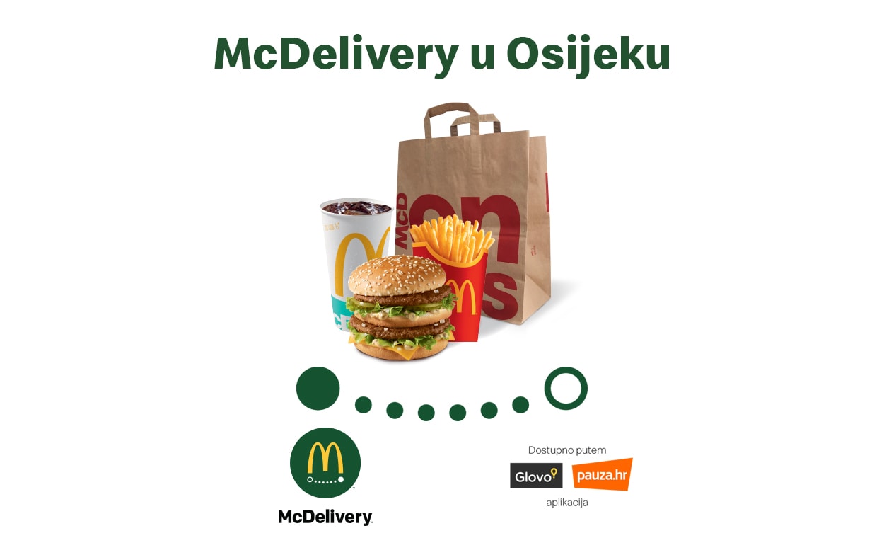 Iz McDrivea Osijek naručite dostavu omiljenih McDonald's proizvoda putem Pauza.hr ili Glovo aplikacije.