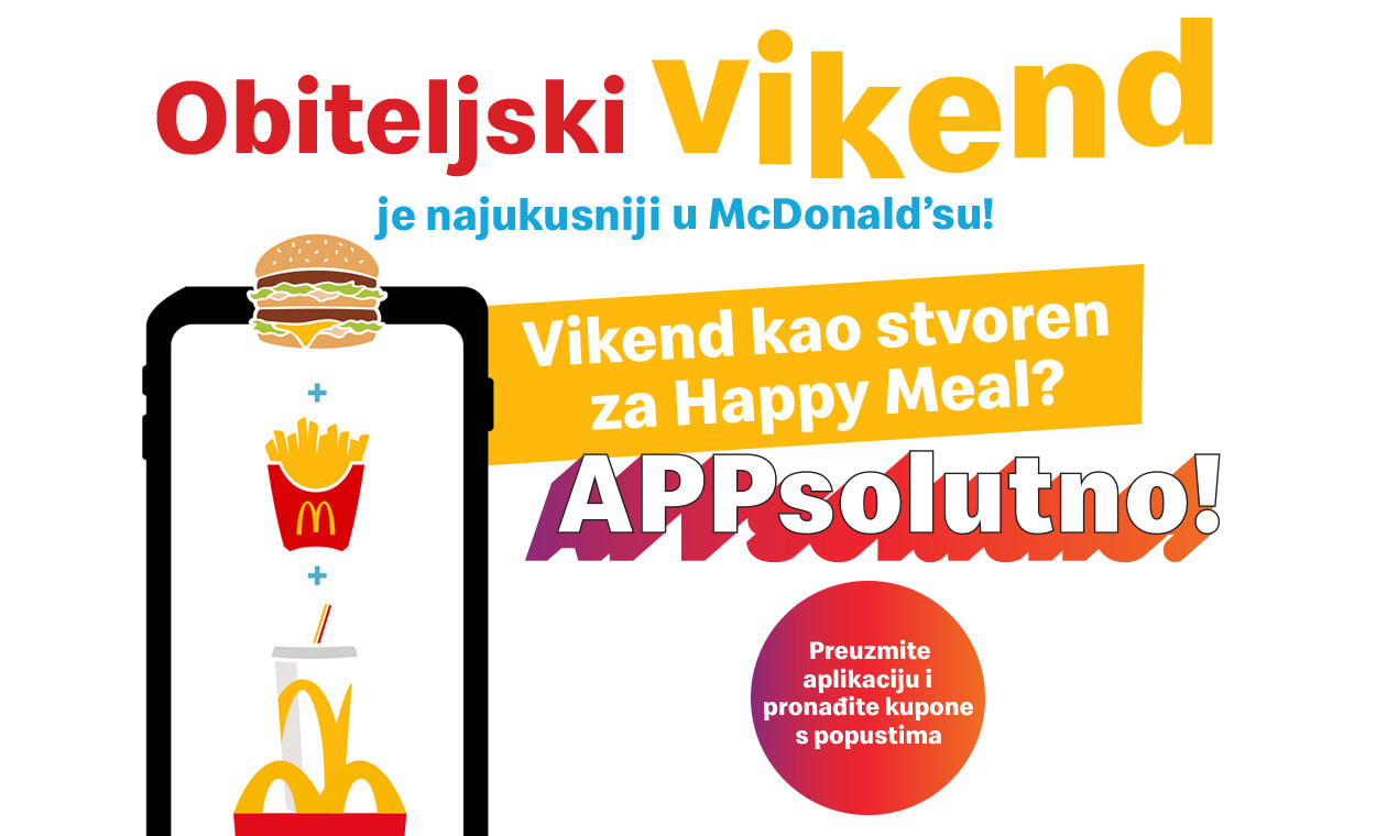 Najuzbudljiviji trenutci sreće ponovno stižu u McDonald’s - vrijeme je za novi obiteljski vikend! Ovog puta veselje dolazi u obliku trostruke sreće, tri različita kupona, tri razloga za bezbroj osmijeha i zajedničkog druženja.