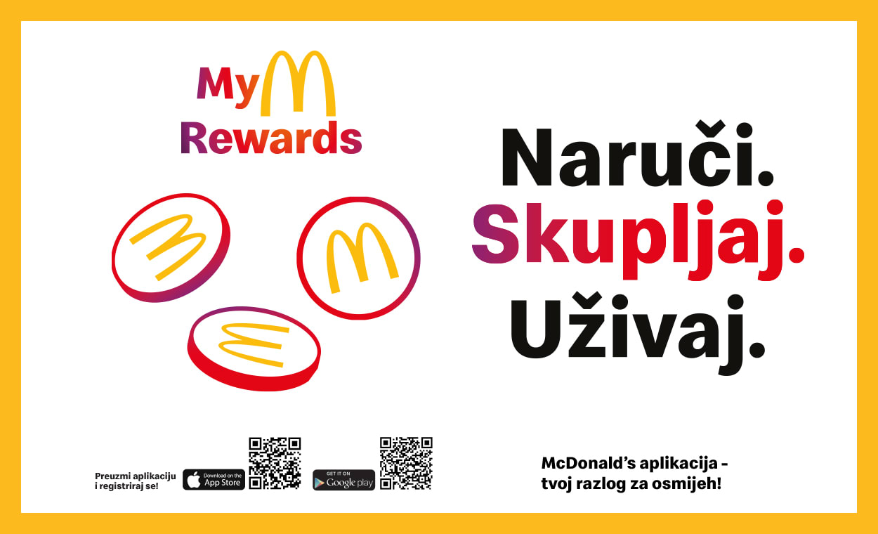 Ako još nisi, sada je pravo vrijeme da preuzmeš McDonald's aplikaciju i počneš skupljati bodove za besplatne proizvode. Pitaš se zašto? Dodali smo još više nagrada u naš MyM program lojalnosti!