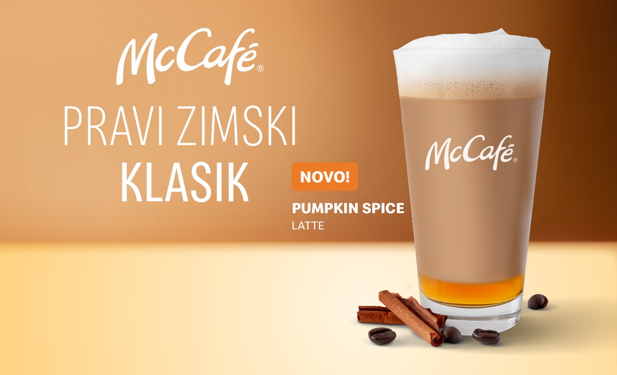 Tvoju omiljenu 100% arabica kavu obogatili smo sirupom s okusom bundeve te notama cimeta i klinčića za savršeno uživanje u nadolazećim zimskim danima. Kombinaciju espressa, mlijeka, mliječne pjene i sirupa s okusom bundeve, klinčića i cimeta možeš naručiti u regular i grande varijanti.