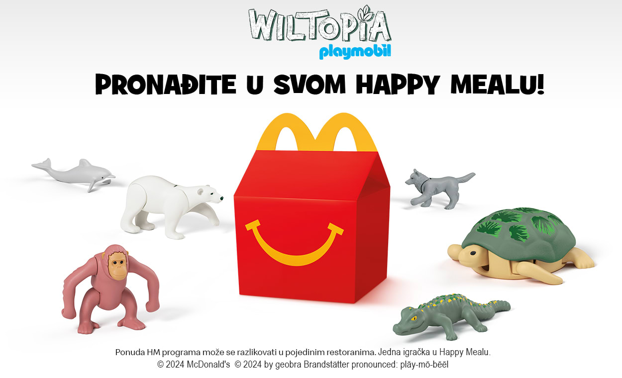 Od danas Happy Meal ponuda vaše mališane vodi u pravu malu istraživačku avanturu. Neka vaše dijete odabere jednu od 14 simpatičnih igračaka divljih životinja izrađene od plastike biljnog podrijetla napravljene od šećerne trske, a nakon toga zajedno se upustite u otkrivanje životinjskog svijeta.