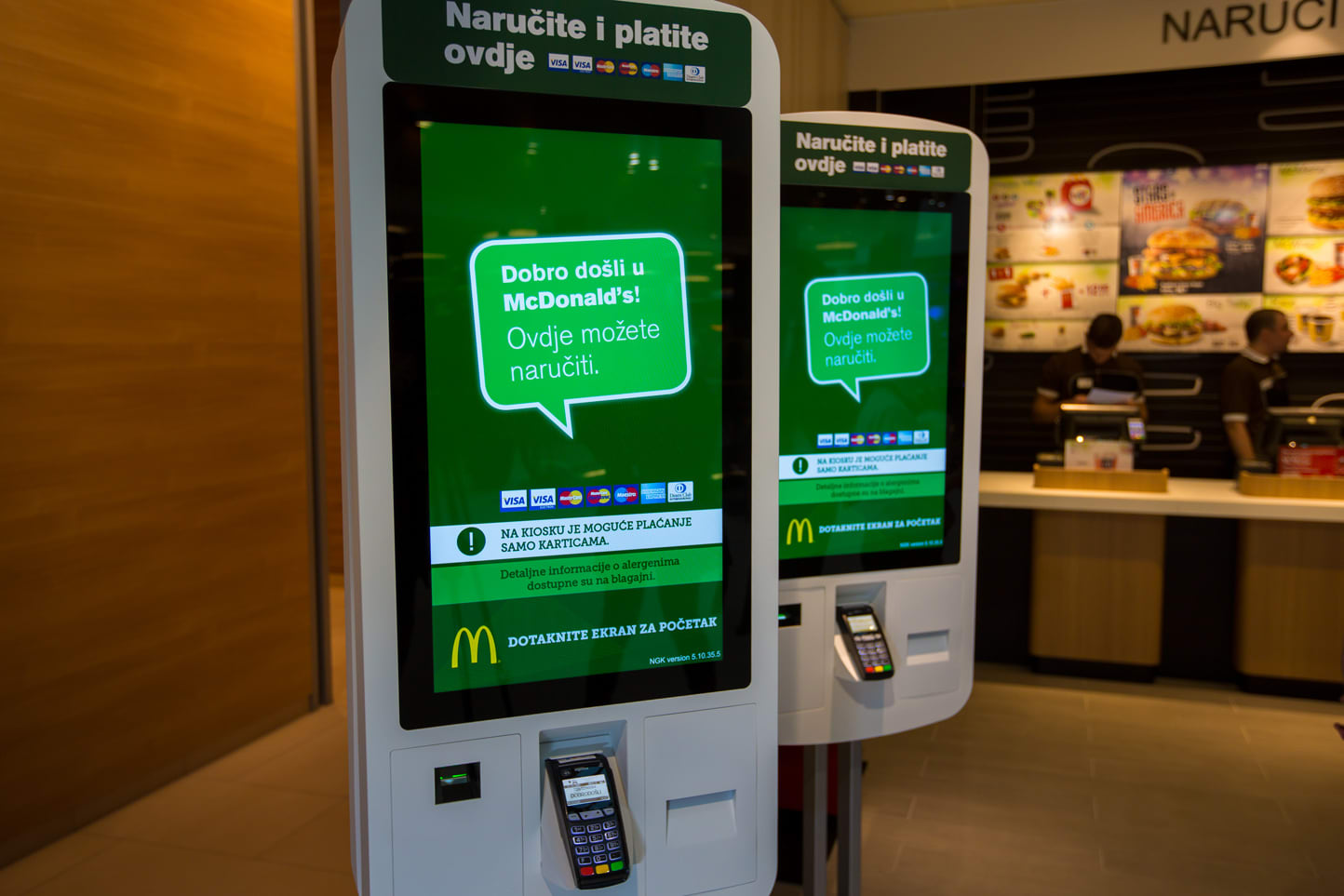 Na kiosku gost samostalno bira što želi u sklopu ponude restorana. Ako plaća karticom, dobije račun i broj narudžbe, a moguće je i plaćanje gotovinom na blagajni nakon što se naruči hrana na kiosku. Zatim prati broj narudžbe na monitoru te, naposljetku, na posebnom pultu, preuzima naručeni proizvod. Na kiosku je moguće i skenirati kupone s popustom koji vas očekuju na McDonald’sovoj mobilnoj aplikaciji.