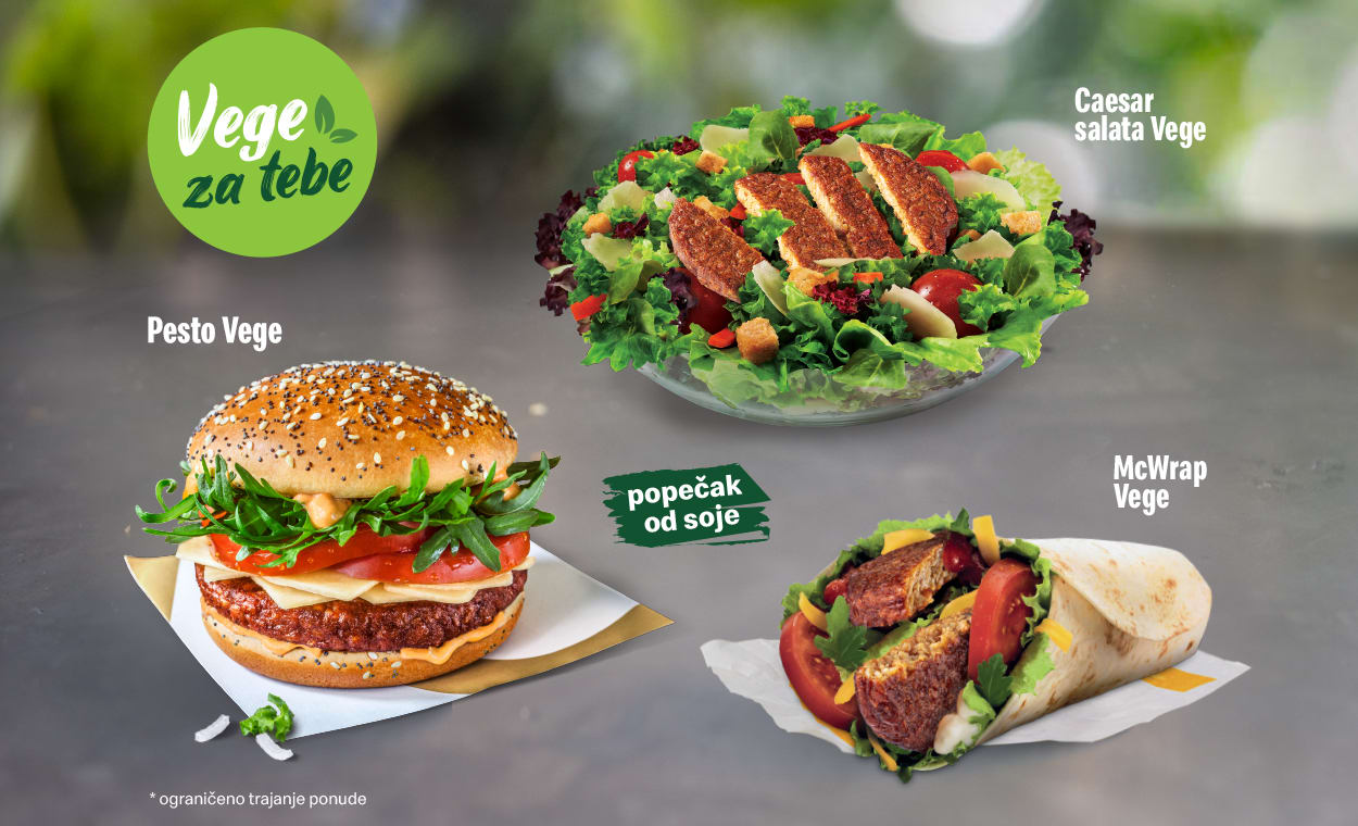 Od ovog proljeća i u našoj redovnoj ponudi možeš uživati u vegetarijanskim opcijama i popečku od soje u Caesar salati Vege i McWrapu Vege.