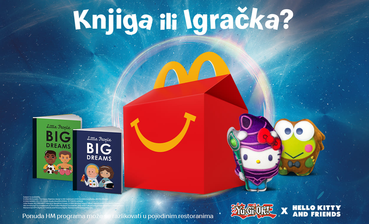Za sve one koji pak vole čitati knjige, umjesto igračke možete odabrati jednu od knjiga iz serije "I can dream big". Zato ne čekajte niti minute, naručite Happy Meal i pružite svojim mališanima nezaboravno Yu-Gi-Oh!, Hello Kitty i prijatelji iskustvo u kojem upravo oni postaju kreatori.